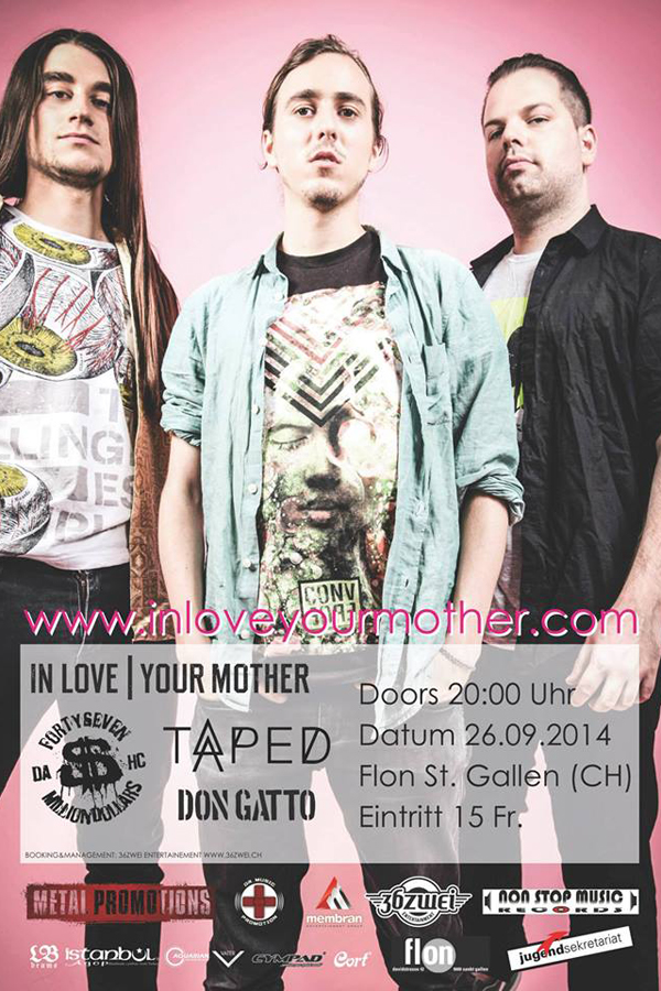 IN LOVE YOUR MOTHER sind bereits bekannt für ihre heftige Energie und ihre Sound-Kraftpakete auf der Bühne, also nutzt die Chance um euch einfach mal selbst von den Live-Künsten der drei wilden Schweizer zu überzeugen. Ihr könnt euch schon mal auf einen wunderbaren Abend voller positiver Chaoseinschlagen und experimentellen Sounds freuen! Unter anderem werdet ihr in die Welt mitgenommen, vor der IN LOVE YOUR MOTHER immer von ihren Müttern gewarnt wurden. Außerdem sind die Jungs, wie bereits angekündigt, im Oktober mit den Excrementory Grindfucks unterwegs. Nicht verpassen!